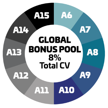 Earn a share of 1% of global commissionable sales by reaching the paid rank of A11 in your first year and maintaining a minimum rank of A11 for two consecutive months.